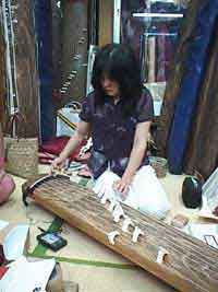 完成したお琴を弾いて音色を確かめて頂きます、これで最後です。